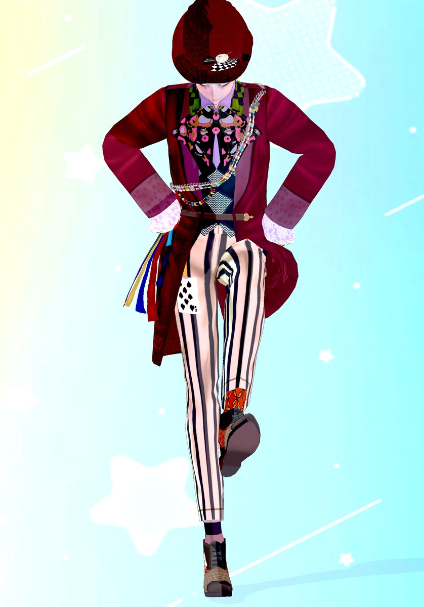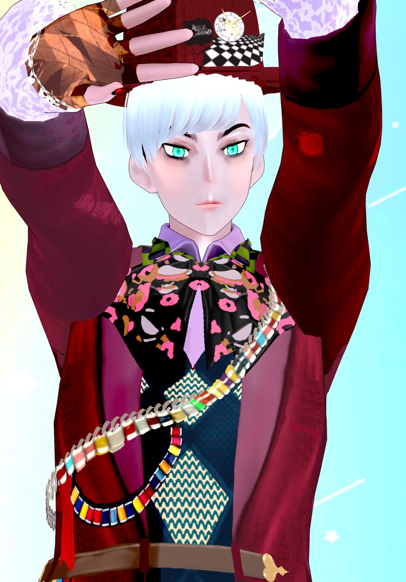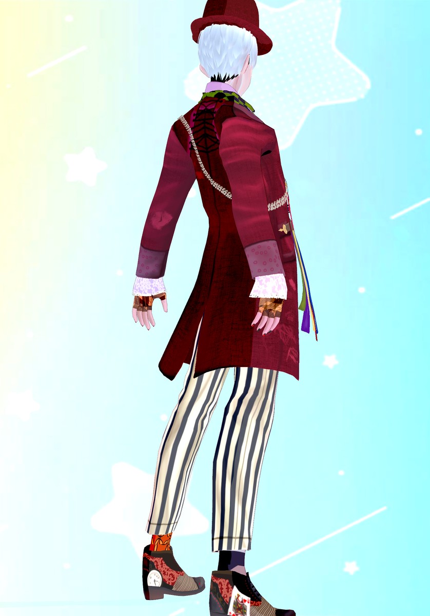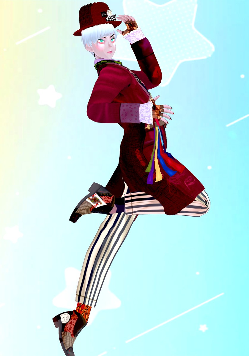 Go Down the rabbit hole and become the Mad Hatter in this complete cosplay set. Set includes waistcoat with shirts, vest and bow, spools of threads, gloves, pants, mix-match socks, shoes, fedora hat and makeup. #VRoidフォト #VRM #Vroidclothes #vroidcustomitem #VRoidClothes #VRoidcostume #VTuber #Booth.pm #BOOTH_PM
